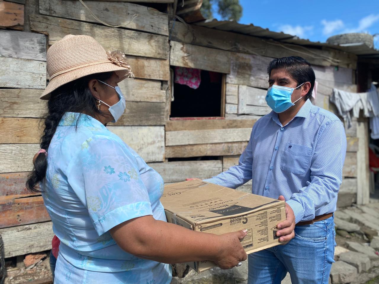 Autoridades de la Zona 7 del MIES entregaron kits de alimentos, ropa y juguetes; así como una cocineta, una licuadora y una cama a una adulta mayor que vive junto a sus cuatro nietos huérfanos en Loja.