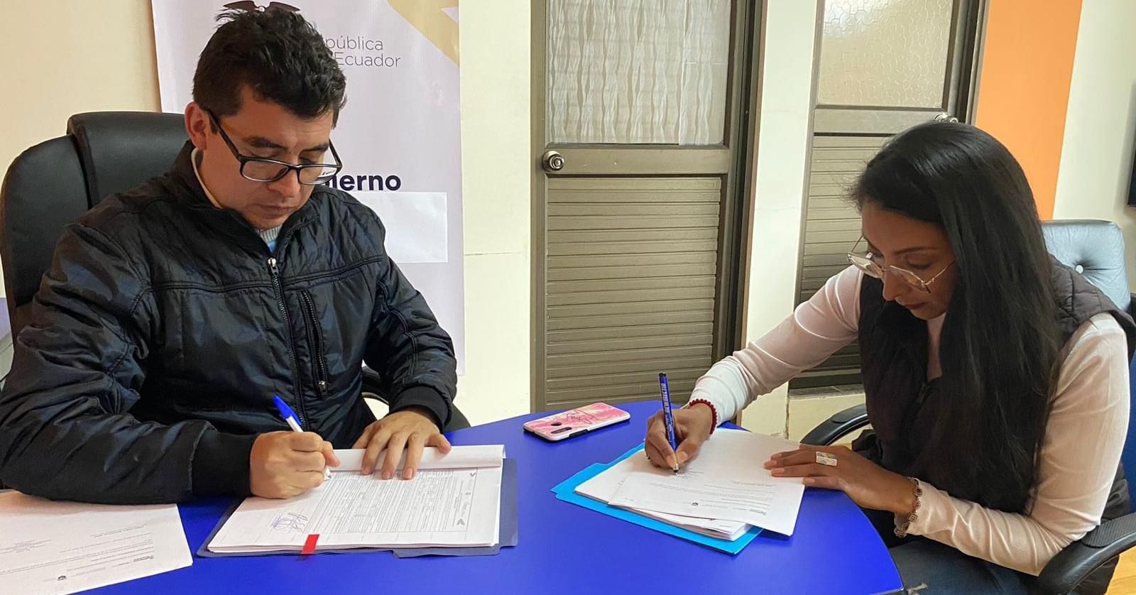 El acuerdo fue suscrito por el distrital MIES en Carchi, Luis Felipe Chamorro, y la presidenta del GAD El Carmelo, Verónica Andrea Ortega. Esta cartera de Estado hará una inversión de USD 20.823, mientras que el gobierno parroquial, como contraparte, invertirá USD 4.200.