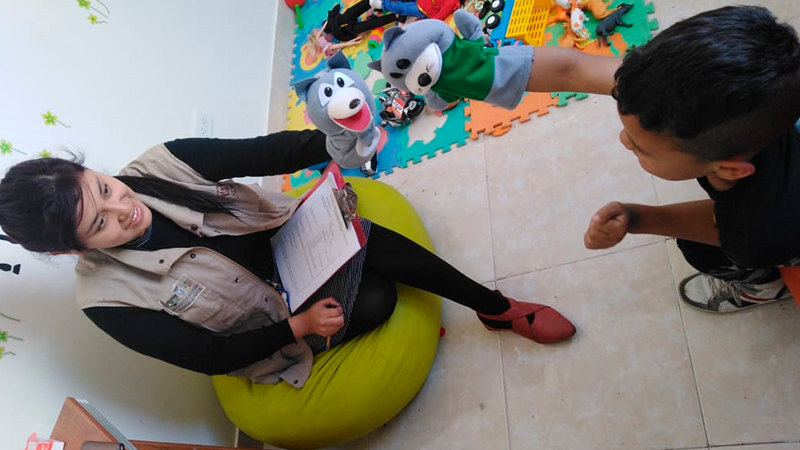 Suárez destacó que desde mayo del año pasado el MIES instaló en la frontera norte un espacio lúdico donde educadoras de desarrollo infantil reciben entre 50 y 80 niñas y niños a diario. Junto a ellos desarrollan actividades recreativas, pintura, música y apoyo emocional mientras sus padres o tutores realizan trámites para ingresar al país.