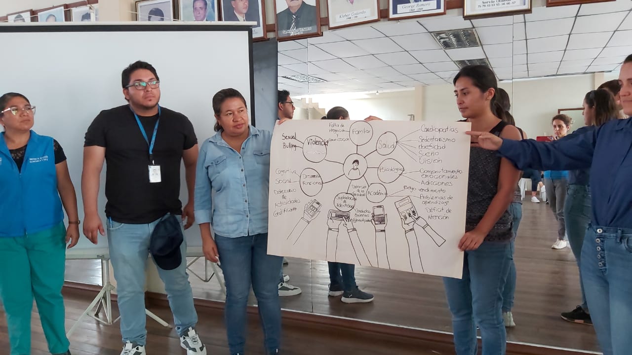 Aproximadamente, 40 técnicos de los servicios de desarrollo infantil, protección especial, adulto mayor y discapacidades del Ministerio de Inclusión Económica y Social (MIES) participaron en el taller: “Prevención de Violencias en Entornos Digitales”, correspondiente al programa Aprendiendo en Familia, cuyo objetivo es reflexionar y sensibilizar respecto al tema de la violencia, las redes sociales, ciberacoso y el buen trato.