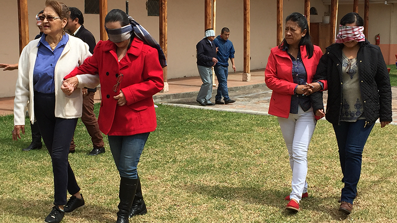 Técnicos y cuidadores experimentan las sensaciones y sentimientos de personas con discapacidad, como parte de la sensibilización con las personas adultas mayores y con discapacidad.