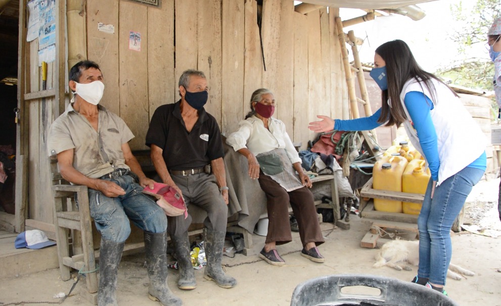El equipo MIES inició su visita a la parroquia dialogando con las autoridades de la localidad con la finalidad de gestionar acciones conjuntas en beneficio de sus moradores, posteriormente se realizó un recorrido por diversas comunas entregando kits alimenticios e insumos necesarios para mejorar la calidad de vida de las familias que viven en vulnerabilidad, como son los casos de María de 85 años de edad, y su hijo Pedro de 67 años quien tiene 65% de discapacidad, a ellos se les entregó víveres, colchones, insumos de cocina y ropa. De igual manera a Olguita, quien se encarga del cuidado y educación de sus tres nietos, los niños son usuarios del programa Creciendo con Nuestros Hijos, espacio donde las educadoras brindan atención a madres gestantes, niñas y niños, en sus domicilios mediante tutorías y trabajos grupales. Del mismo modo se atendió al ciudadano Alfredo, quien vive en extrema vulnerabilidad, y en donde el equipo institucional se comprometió a gestionar las acciones pertinentes para encontrar un espacio digno donde pueda vivir.