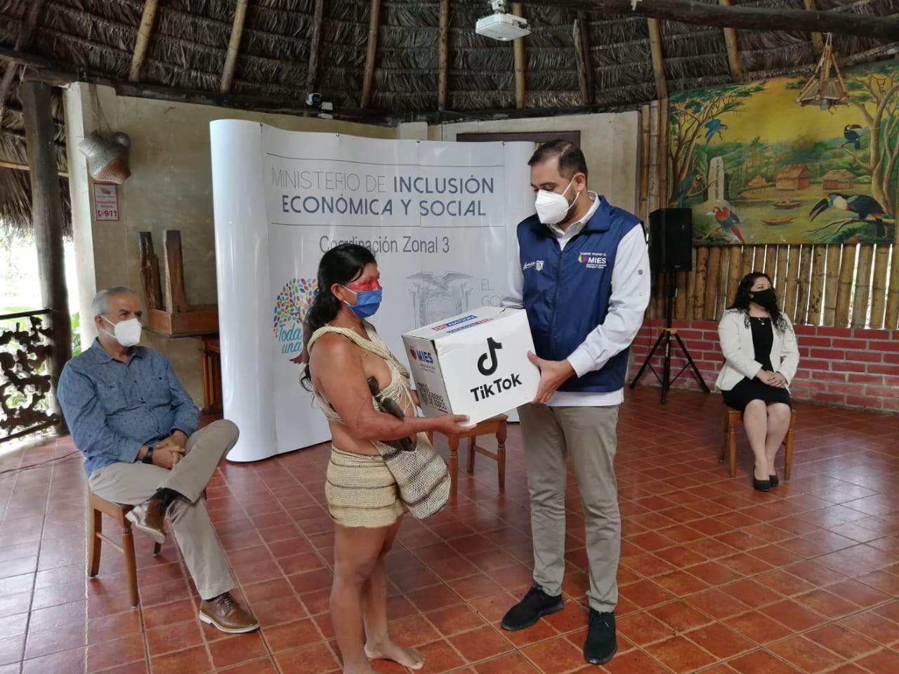 El Ministerio de Inclusión Económica y Social (MIES), en coordinación con la plataforma digital Tik Tok y la Universidad Internacional de la Rioja, gestionaron la distribución de estos kits en Pastaza. Además, gracias a un trabajo articulado con el Instituto Ecuatoriano de Seguridad Social, fue posible el acceso aéreo, fluvial y terrestre a 97 comunidades en los rincones más alejados de esta provincia; garantizando así no solamente raciones alimenticias, sino atención integral, a través de brigadas médicas y odontológicas, para las comunidades familias amazónicas.