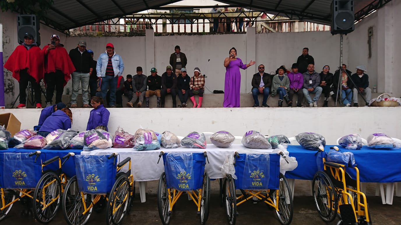 Con el objetivo de fortalecer la atención a grupos prioritarios, el Ministerio de Inclusión Económica y Social (MIES) entregó 800 kits de vestimenta y 18 sillas de ruedas a personas en situación de vulnerabilidad, durante la Brigada Social por el Nuevo Ecuador que se llevó a cabo en la comunidad Cumbijín, del cantón Salcedo, provincia de Cotopaxi.