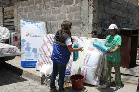 Dos familias afectadas por incendios parciales en sus viviendas ubicadas al norte de Quito recibieron kits de atención humanitaria y acompañamiento por parte del equipo de gestión de riesgos del Ministerio de Inclusión Económica y Social (MIES).