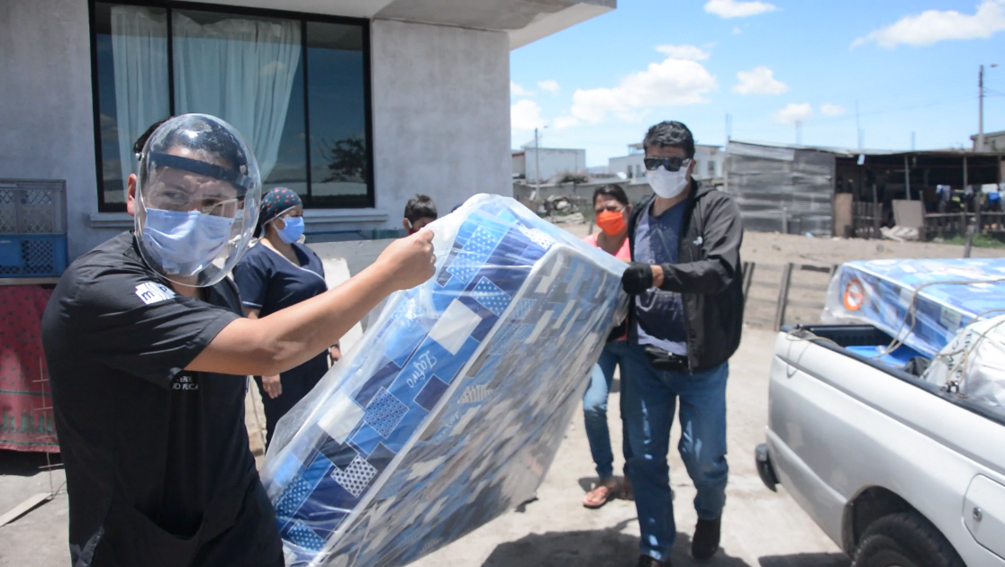 MIES entregó enseres de cocina, colchones, kits de alimentos, una cocineta a una familia en situación de vulnerabilidad del norte de Quito.