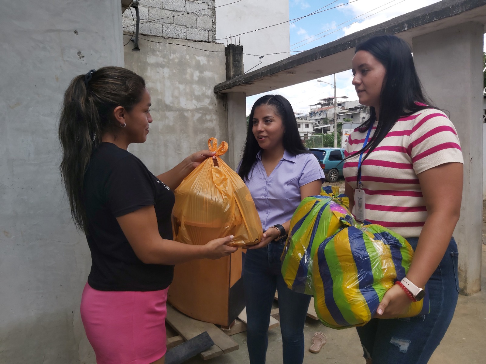 El Ministerio de Inclusión Económica y Social (MIES), a través de la Dirección Distrital Piñas, entregó 36 kits de ayuda humanitaria con alimentos no perecibles, prendas de vestir y menaje de concina a 12 familias afectadas por inundaciones en los cantones Marcabelí y Balsas, de la provincia de El Oro.