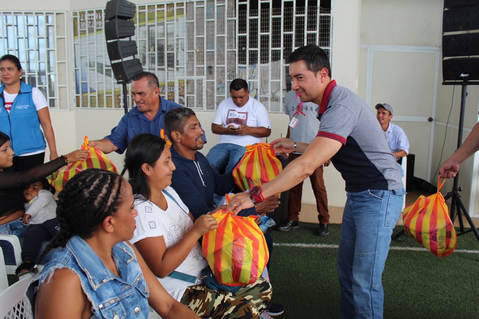 Kits con alimentos no perecibles, ropa, implementos de aseo, juegos de dormitorio y una cocina fueron parte de la ayuda humanitaria que entregó el MIES, en coordinación con el Municipio de Camilo Ponce Enríquez, a las familias afectadas de esta zona austral del país.