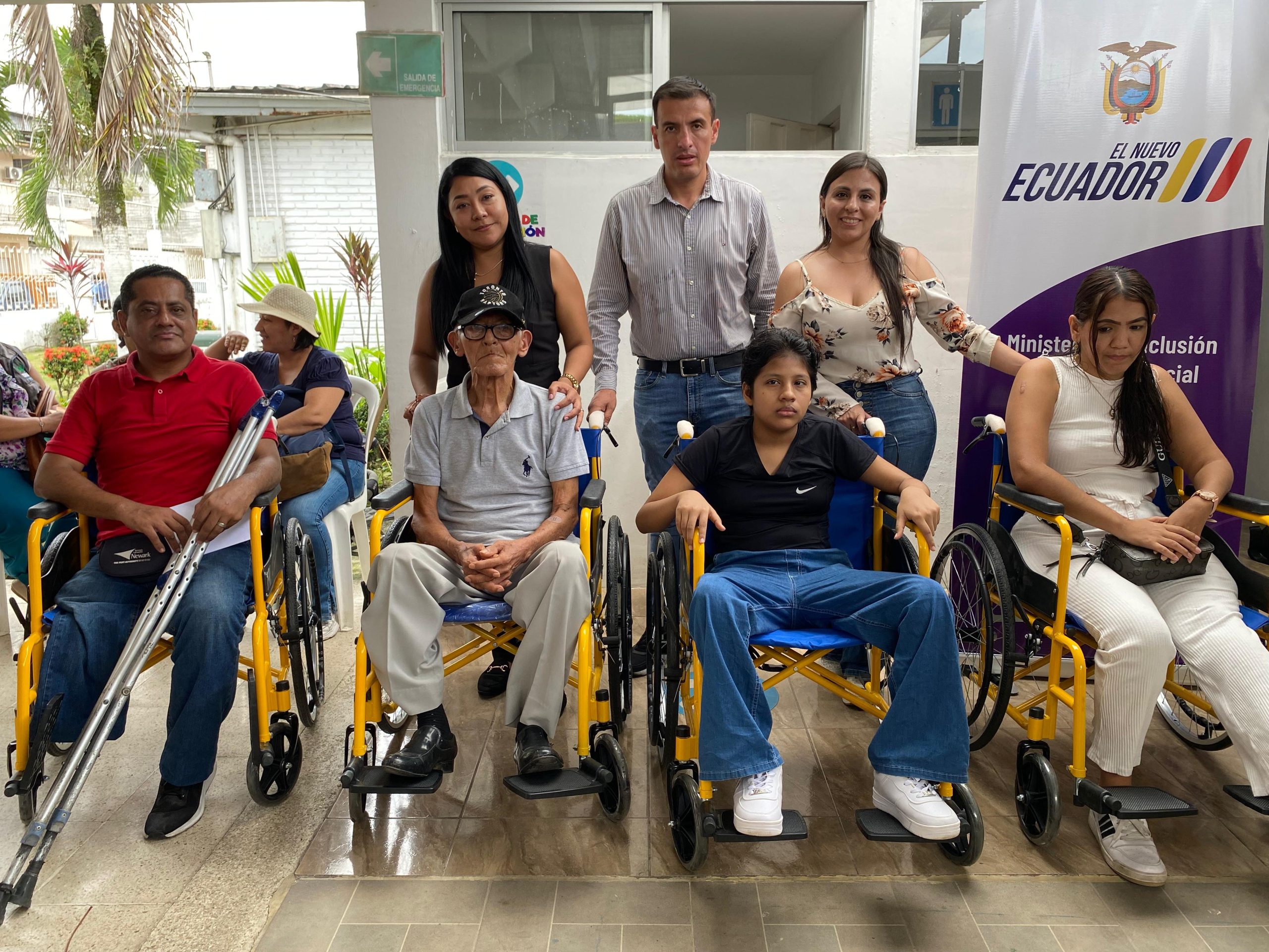 El Ministerio de Inclusión Económica y Social (MIES), a través de la Dirección Distrital de Machala, entregó sillas de ruedas y kits de vestimenta a personas vulnerables y de grupos de atención prioritaria de los cantones Machala, El Guabo, Pasaje y Chilla, en la provincia de El Oro.