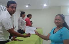 Los asistentes recibieron su certificado de aprobación de los cursos previo a la entrega del crédito y posteriormente recibieron de manera simbólica un cheque con el monto total de los créditos, correspondiente a 30 mil dólares.