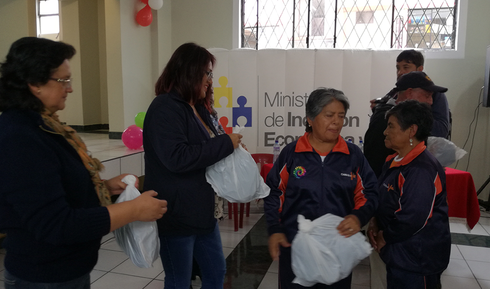 Un total de 200 adultos mayores de la parroquia de Yaruquí, quienes son usuarios de los servicios que entrega el Ministerio de Inclusión Económica y Social (MIES) a este sector de la población, recibieron donaciones de ropa y alimentos no perecibles que fueron receptadas durante la campaña Da Dignidad para erradicar la mendicidad.