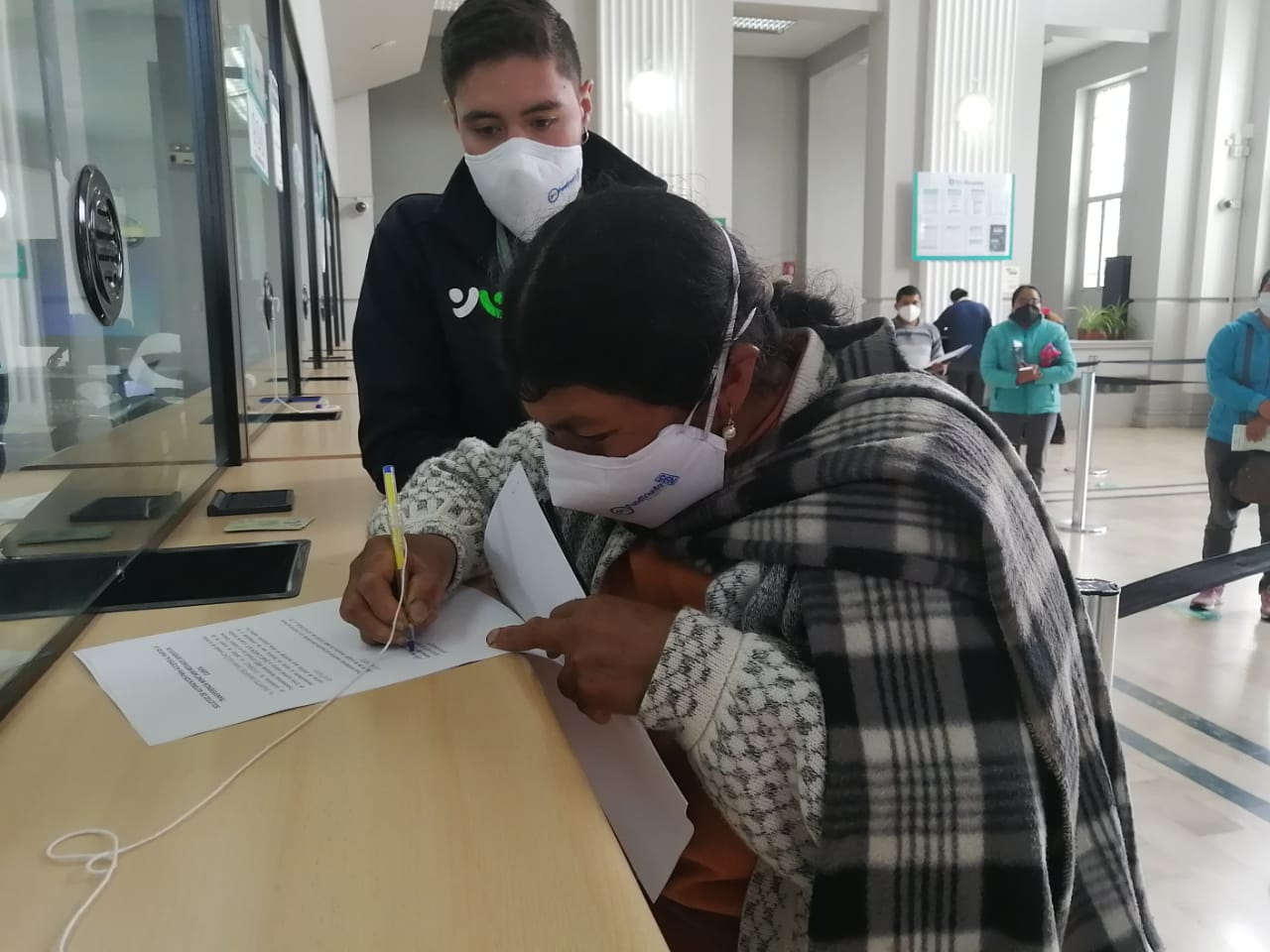 Funcionarios del MIES Latacunga acompañaron a María B. a realizar el trámite regular para el cobro de la asignación para sus hijos en la agencia bancaria de BanEcuador de la ciudad. Se sugirió la apertura de una cuenta de ahorros para que acceda de forma rápida y segura.