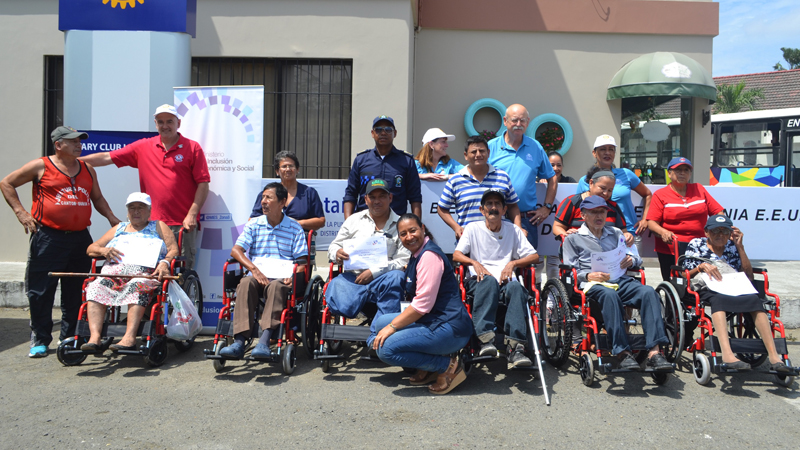 El Ministerio de Inclusión Económica y Social (MIES) en coordinación con el Club Rotario de La Puntilla entregó 31 sillas de ruedas a usuarios y usuarias del programa de discapacidad que desarrolla esta cartera de Estado en los cantones Guayaquil, Durán y Samborondón. La entrega se cumplió este lunes, 19 de julio, en la sede del Club Rotario.
