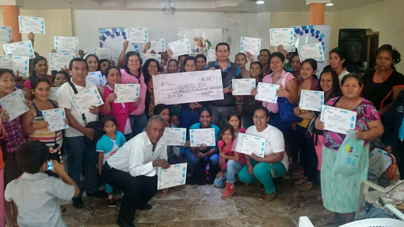 La entrega simbólica se realizó el viernes 29 de julio, en el salón de uso múltiple de la municipalidad de San Miguel de los Bancos. Los CDH se invertirán en emprendimientos de crianza y comercialización de pollos y canchos, así como en la siembra y producción de cacao.