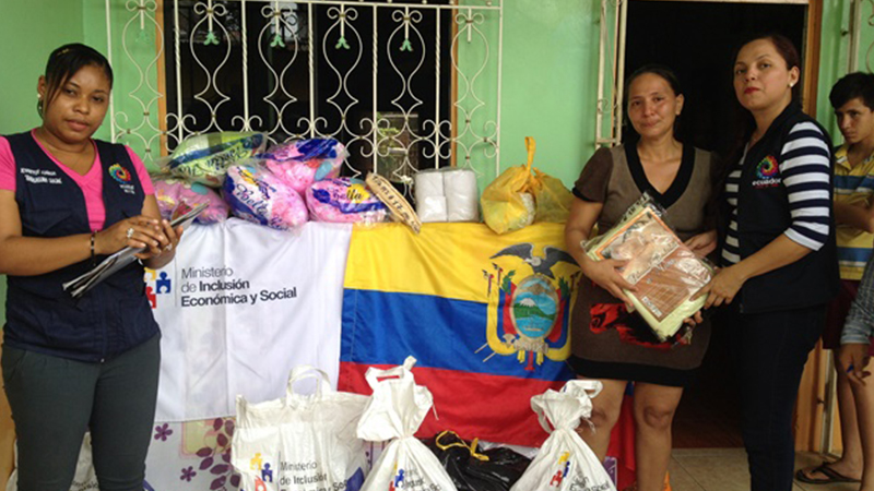 El Ministerio de Inclusión Económica y Social (MIES), a través del personal técnico del área de Gestión de Riesgo y en trabajo conjunto con el Gobierno Autónomo Descentralizado Municipal El Empalme, entregó atención humanitaria a una familia que resultó damnificada por la inundación de su vivienda provocada por las fuerte lluvias que cayeron días atrás sobre el cantón El Empalme. La familia afectada fue ubicada en una casa de acogida y recibió kits de alimentos, de dormitorio, y de aseo.