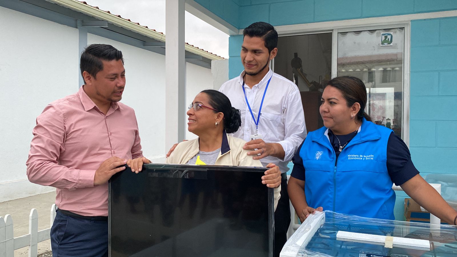 En cumplimiento al compromiso presidencial, el Ministerio de Inclusión Económica y Social (MIES), a través de la dirección distrital Piñas, entregó kits de línea blanca y menaje de cocina a cuatro familias en situación de vulnerabilidad, del proyecto habitacional “Huaquillas”.