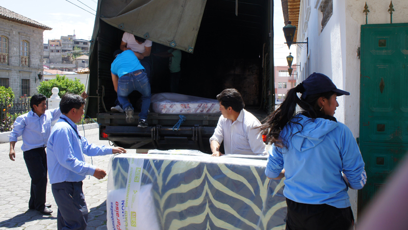 Desde el Centro de Acopio de la iglesia de San Sebastián en Latacunga, provincia de Cotopaxi, salieron cinco camiones del Ejército Ecuatoriano con atención humanitaria para varias familias de la ciudad de Babahoyo, provincia de Los Ríos, que resultaron damnificadas por el fenómeno El Niño. La atención humanitaria está compuesta de 413 colchones y 826 almohadas.