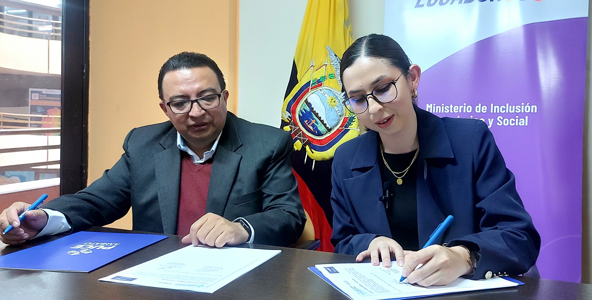 La firma de este acuerdo la hicieron la coordinadora zonal 3 del MIES, Doménica Peña, y el prorrector de la Universidad Católica sede Ambato, Padre Juan Carlos Acosta. Este convenio tendrá una duración de 5 años