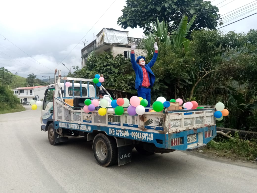 Con este propósito, en un recorrido por diferentes barrios y ciudadelas, con música,  globos y un payasito, se animó y saludó a los infantes, mientras personal del MIES entregaba caramelos y un kit de vinchas a las niñas.