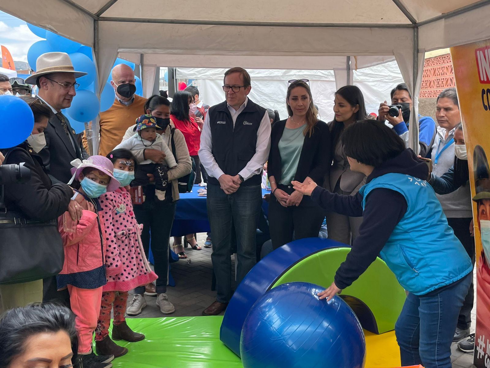 Un aspecto destacado, fue la presencia del vicepresidente de la República, Alfredo Borrero y Erwin Ronquillo de la Secretaria Técnica Ecuador Crece Sin Desnutrición, quienes junto con 20 madres de familia usuarias de los servicios de MIES y ciudadanía participaron en un conversatorio, en el cual se realizó una actividad lúdica para comprender la problemática de la Desnutrición Crónica Infantil.