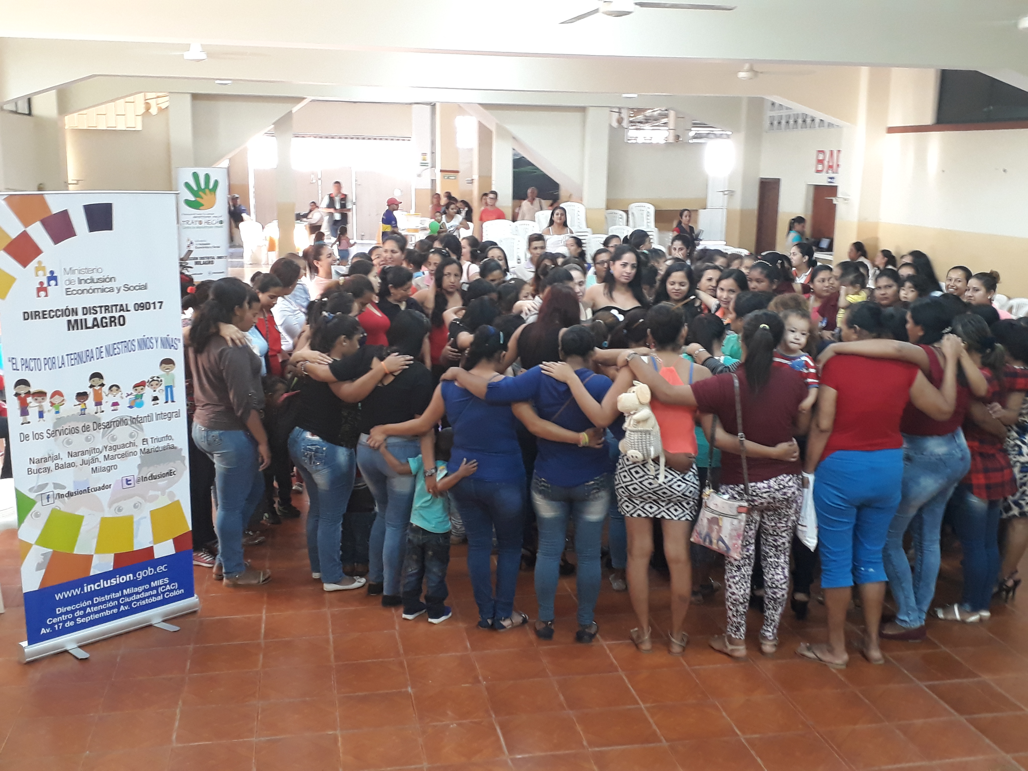 Cerca de 350 madres de familia del cantón Naranjal usuarias de los servicios de los Centros Infantiles del Buen Vivir (CIBV) y Creciendo con Nuestros Hijos (CNH), brindados por la Dirección Distrital Milagro del Ministerio de Inclusión Económica y Social (MIES), participaron de los diálogos “Pacto por la Ternura de nuestros niños y niñas”.