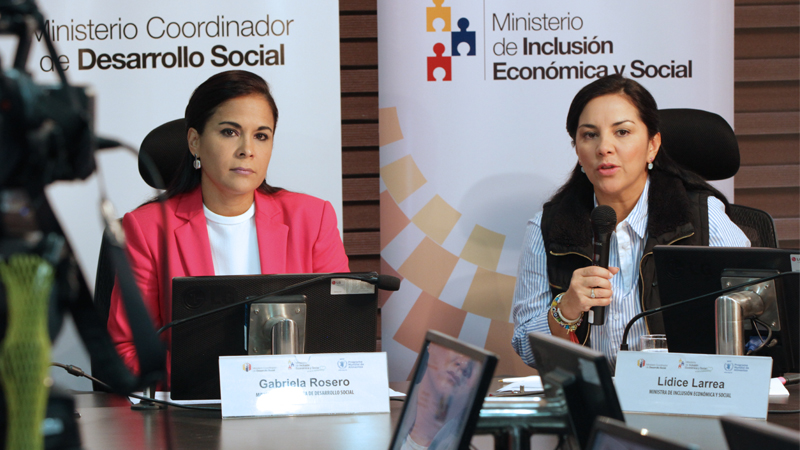 A 100 días del terremoto, el Ministerio de Inclusión Económica y Social (MIES), el Programa Mundial de Alimentos (PMA) de las Naciones Unidas y el Ministerio Coordinador de Desarrollo Social (MCDS) rindieron cuentas sobre el proceso de entrega del bono de alimentación que otorga el Gobierno Nacional a las familias damnificadas. La rueda de prensa se realizó el jueves, 28 de julio, y contó con la participación de la ministra del MIES, Lídice Larrea, la representante del PMA en Ecuador, Kyungnan Park, y la ministra Coordinadora de Desarrollo Social (MCDS), Gabriela Rosero.