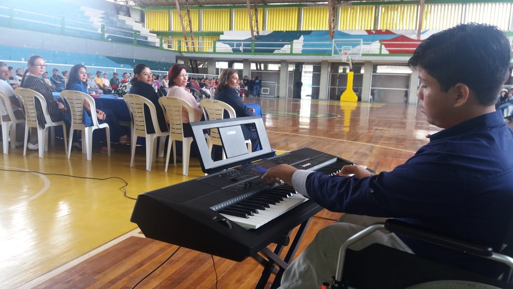 “Mi hijo tiene discapacidad física, y me siento muy orgullosa del talento que Dios le ha concedido a través de la música y el piano, que son el medio que utiliza para llegar hasta donde sus sueños lo lleven y yo estoy aquí para apoyarlo”, afirmó Carminia Orellana, madre de Luis Ludeña, usuario del Bono Joaquín Gallegos Lara.