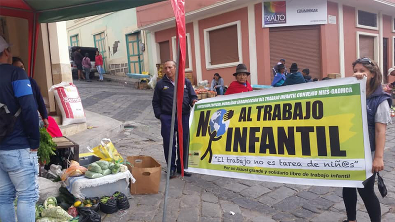 En los mercados se sensibilizó a la ciudadanía sobre los riesgos del trabajo infantil y la mendicidad mediante el uso de carteles.