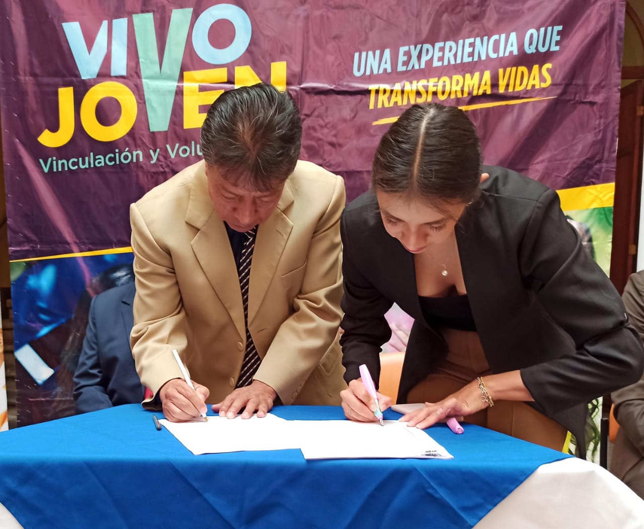En el marco del programa Vivo Joven, la Coordinación Zonal 3 del Ministerio de Inclusión Económica y Social (MIES) efectuó la firma de convenios con los institutos de educación superior Manuel Lezaeta Acharran, España y Stanford, de la ciudad de Ambato, con el objetivo de fortalecer la vinculación y participación de los jóvenes a los servicios que brinda esta cartera de Estado.