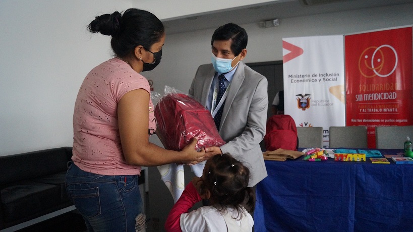 El Ministerio de Inclusión Económica y Social (MIES) y la Fundación Children Ecuador entregaron kits con material didáctico para niñas y niños de 104 familias extranjeras en situación de movilidad humana que reciben atención en Centros de Desarrollo Infantil (CDI) ubicados en los cantones Guayaquil, Durán y Samborondón.