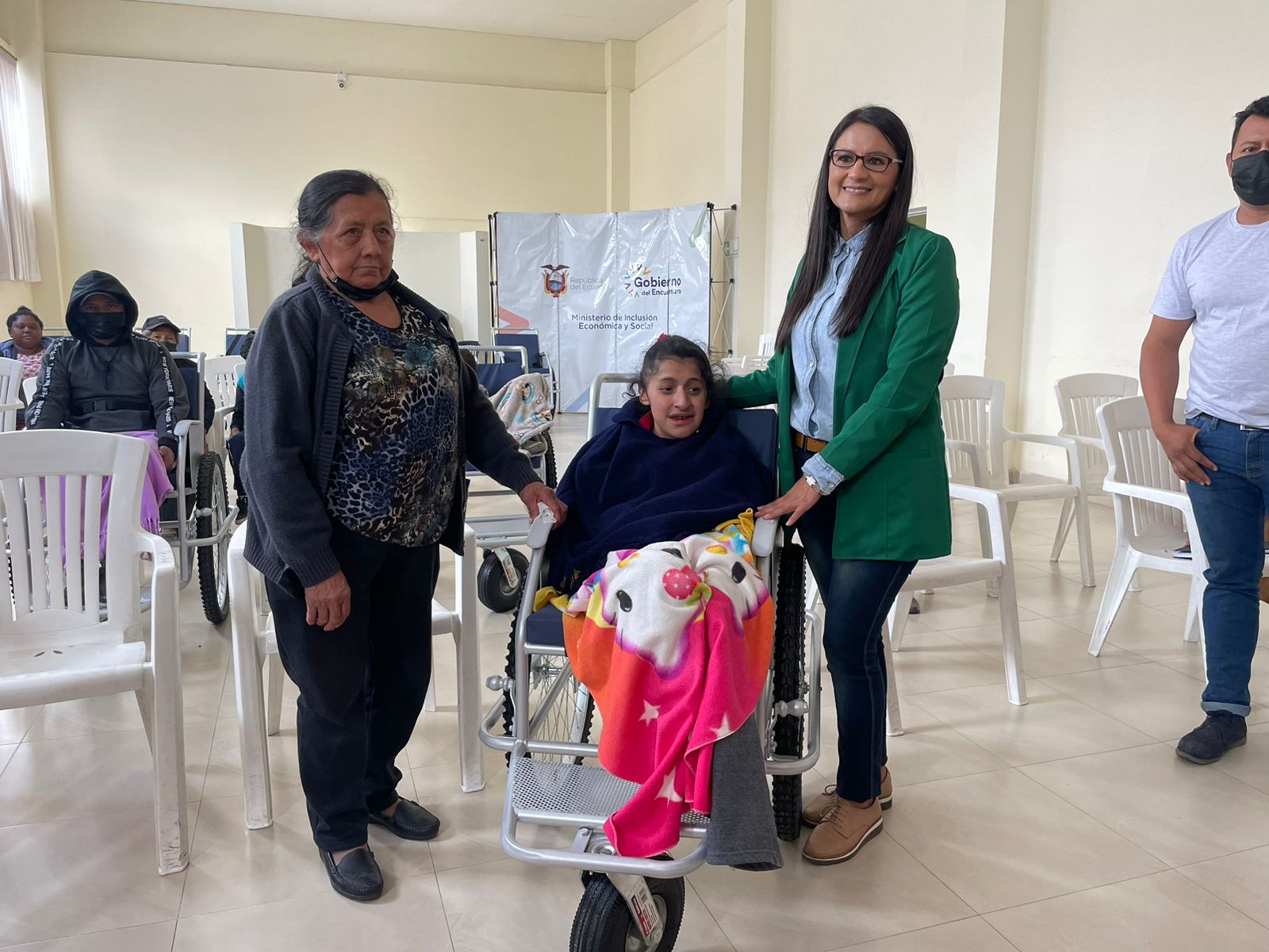 El Ministerio de Inclusión Económica y Social (MIES) Dirección Distrital Latacunga en articulación con la Fundación Charity Anywhere entregaron 11 sillas de ruedas y kits de vestimenta a usuarios del Bono Joaquín Gallegos Lara de la provincia de Cotopaxi. Este bono está dirigido a personas con discapacidad grave, muy grave y completa, enfermedades catastróficas, raras o huérfanas y niños, niñas y adolescentes menores de 18 años viviendo con VIH-SIDA, con un valor de 240 dólares mensuales.