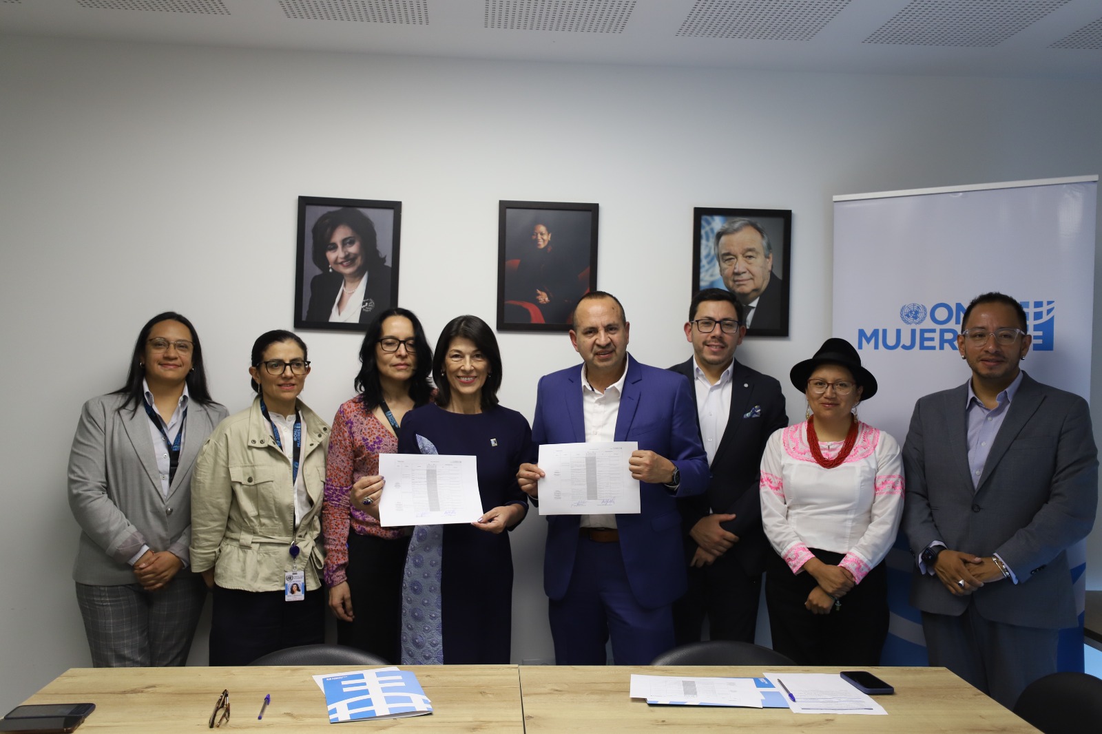 En este contexto, el viceministro de Inclusión Social del MIES, Miguel Vásquez, y la representante de ONU Mujeres en Ecuador, Ana Elena Badilla, junto a varias autoridades nacionales de esta cartera de Estado, mantuvieron una reunión de trabajo en la que se firmó un acuerdo interinstitucional para presentar este plan de trabajo y avanzar en esta iniciativa conjunta.