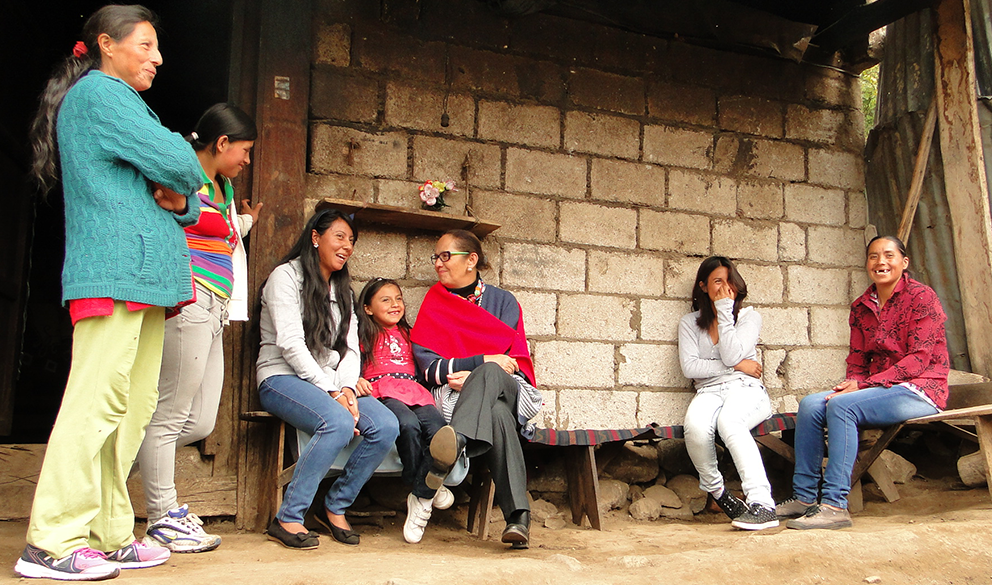 Luego de concluir este diálogo la titular del MIES se trasladó al barrio El Tambo de Pelileo donde compartió gratos momentos con la familia Quilligana. Este hogar está compuesto por tres núcleos familiares. Dos madres reciben el Bono de Desarrollo Humano (BDH), una adulta mayor su pensión jubilar y todos participan en la Estrategia de Acompañamiento Familiar. La Ministra escuchó historias como la de Alexandra Vargas, de 20 años de edad, quien actualmente estudia en la Universidad Técnica de Ambato la carrera de Trabajo Social, pues gracias al Bono de Desarrollo Humano que recibe su madre puede continuar estudiando. “Nos están apoyando para seguir adelante y cumplir con nuestros sueños”, relató.