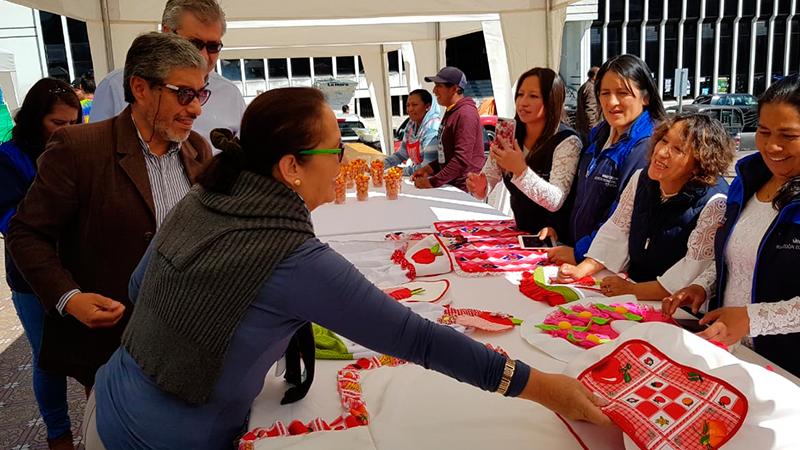 Después se trasladó al parque de la Independencia de Tulcán para recorrer la feria “Nosotros Emprendemos”. En el sitio pudo conocer emprendimientos como artesanías, manualidades, comida típica, productos agrícolas, de servicios, entre otros; generados por de los actores de la Economía Popular y Solidaria que acceden al Crédito de Desarrollo Humano.