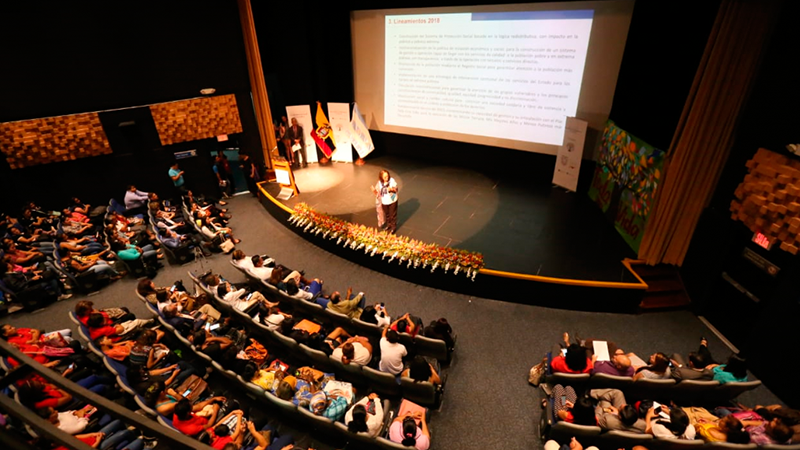 El auditorio del Museo Antropológico y Arte Contemporáneo, en Guayaquil, y ante alrededor de 350 personas, entre personas usuarias de los servicios que brinda el Ministerio de Inclusión Económica y Social (MIES) y autoridades nacionales y locales de esta cartera de Estado, la ministra Berenice Cordero realizó la rendición de cuentas de la gestión 2018, que reflejó en cifras y datos la gestión nacional en beneficio de un millón y medio de personas de los sectores de la población en condición de pobreza, extrema pobreza y situación de vulnerabilidad.