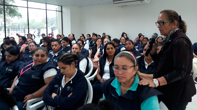 Posteriormente, la ministra Cordero se trasladó a la Universidad Estatal de Milagro, en donde mantuvo un conversatorio con alrededor de 100 técnicos de la Misión Mis Mejores Años y educadoras familiares de la modalidad Creciendo con Nuestros Hijos. Durante esta actividad reiteró las acciones desplegadas por el MIES para erradicar la desnutrición infantil crónica en niñas y niños e incentivo a las y los funcionarios a brindar una atención que mejore la calidad de vida de estos grupos de atención prioritaria.