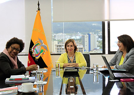 La Ministra de Inclusión Económica y Social, Doris Soliz Carrión, mantuvo esta tarde una  reunión con representantes del Fondo Interamericano de Desarrollo Agrario con el objetivo de revisar los avances y logros del Proyecto de Desarrollo del Corredor Central implementado con el FIDA en el país.