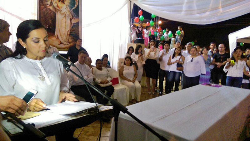 Al cumplirse este 16 de abril un año del terremoto que devastó a Manabí, la ministra de Inclusión Económica y Social, Lídice Larrea, participó en una emotiva ceremonia religiosa que se realizó en la Plaza Cívica de la ciudad de Calceta y que recordó a las víctimas de esta catástrofe, que afectó mayormente a esta provincia.