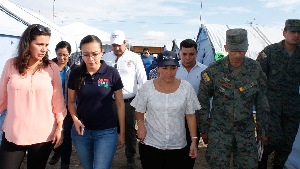 Ministra Larrea recorre junto a autoridades albergues de Pedernales