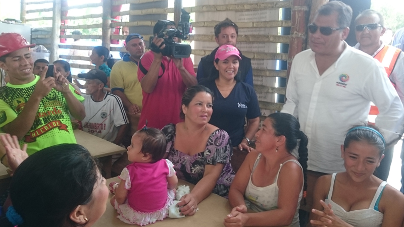 Ministra Larrea recorre junto al Presidente Correa albergues de la provincia de Manabí