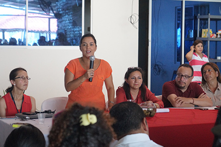 Hasta el cantón San Vicente, en Manabí el pasado 21 de mayo llegó la delegación del MIES, encabezada por la Ministra Lídice Larrea, equipo directivo y personal técnico de esta cartera de Estado. El objetivo de la jornada fue socializar con el personal del MIES las acciones que se llevan a cabo para informar sobre el bono de acogida, alquiler y alimentación a las personas damnificadas por el terremoto del pasado 16 de abril.