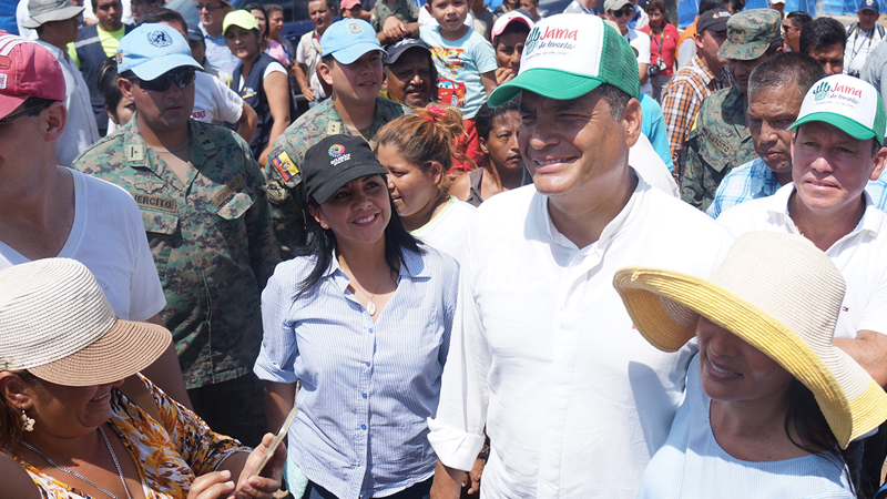 Ministra Lídice Larrea recorre junto al Presidente Correa albergues de Jama, El Matal y San Isidro