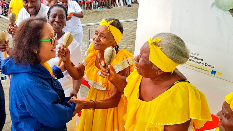 Al culminar su agenda en San Lorenzo, la Ministra compartió un grato momento cultural con personas adultas mayores que reciben atención y cuidados en el centro gerontológico del cantón San Lorenzo y del programa Mis Mejores Años.
