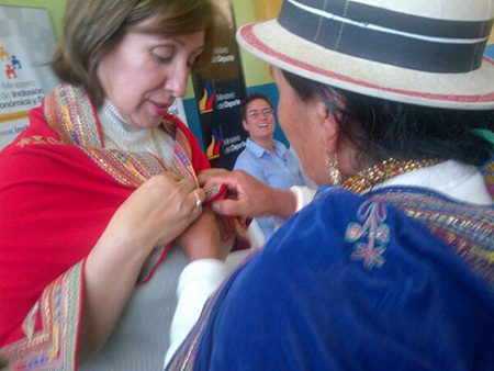 Doris Soliz Carrión, Ministra de Inclusión Económica y Social, recibió un reconocimiento por miembros de la Comunidad de ‘Gradas’, de la parroquia San Simón del cantón Guaranda, por el trabajo que realiza el MIES en Bolívar. El acto se llevó a cabo el sábado 19 de octubre, en la Feria Ciudadana desarrollada en el marco del Enlace Ciudadano 344 que dio el Presidente Rafael Correa, en San Miguel de la Provincia Bolívar.