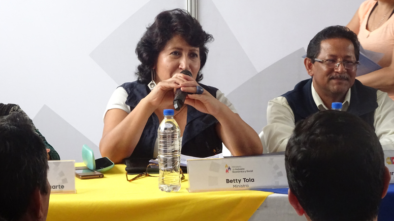 La ministra de Inclusión Económica y Social (MIES), Betty Tola, escuchó varias peticiones y dialogó con la ciudadanía de la provincia de Santa Elena durante el Gabinete Itinerante y la Feria Ciudadana que se realizaron el 29 y 30 de enero en la península. La actividad se cumplió en la Universidad Estatal “Península de Santa Elena” y contó con la participación del Presidente Rafael Correa y las máximas autoridades de las diferentes carteras de Estado.
