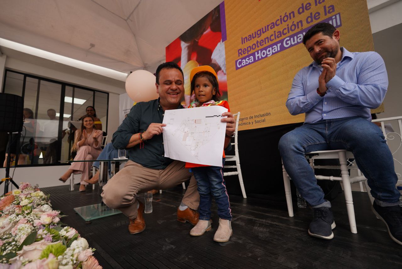 Con un emotivo evento, el ministro de Inclusión Económica y Social, Esteban Bernal, entregó hoy la repotenciación que se hizo en la Casa Hogar Guayaquil, lo que representó una inversión total de USD 419.811 por parte de esta cartera de Estado, fortaleciendo la atención y cuidados permanentes que reciben 34 niñas y niños, en situación de vulnerabilidad.
