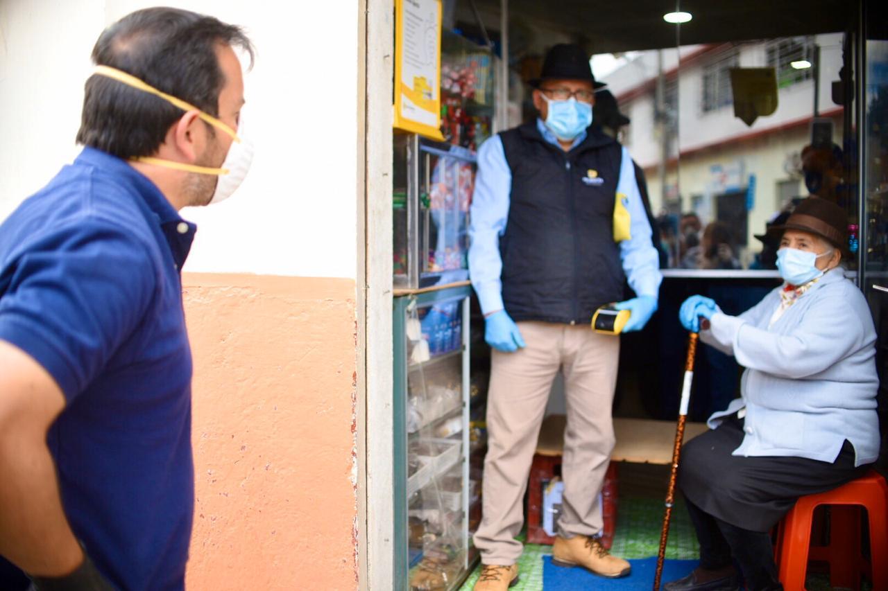 El ministro de Inclusión Económica y Social, Iván Granda Molina, recorrió distintos puntos de pago del bono de Protección Familiar de los cantones de Saraguro y Catamayo, en la provincia de Loja, en donde verificó que las personas que cobran este bono cumplan con las medidas de prevención dispuestas por el Gobierno Nacional para evitar contagio de COVID 19. Además, entregó 500 kits de alimentos a familias vulnerables de los barrios Oñacápac y Buenavista, como parte de la campaña “Dar una mano, sin dar la mano”.