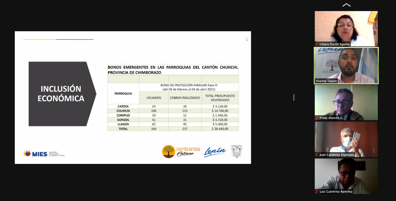 El ministro Taiano informó virtualmente a la Comisión de la Biodiversidad y Recursos Naturales de la Asamblea Nacional sobre las acciones que realizó el MIES con las familias damnificadas por los deslaves de tierra que se produjeron en el cantón Chunchi.
