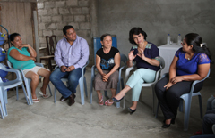 Siete usuarias del Crédito de Desarrollo Humano (CDH) de Montecristi dialogaron con la Ministra de Inclusión Económica y Social, Betty Tola, durante el encuentro de emprendedores de la economía popular y solidaria realizado en ese cantón. El objetivo fue conocer las experiencias y aspiraciones de estas mujeres.