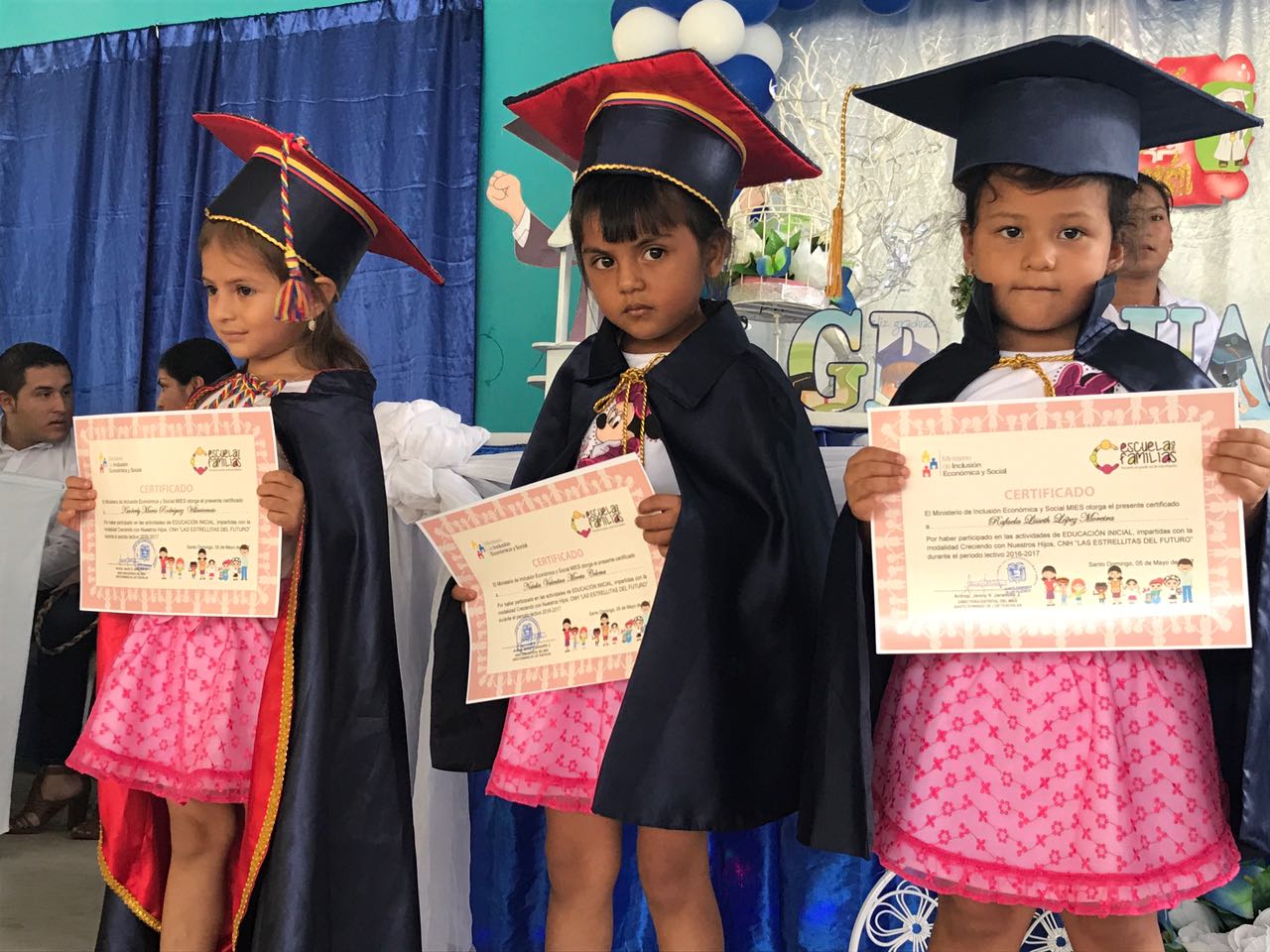 La dirección distrital del MIES Santo Domingo realizó un evento de graduación simbólica de los infantes con la presencia de madres y padres de familia y del GAD parroquial. Allí, Eva Merchán, madre de familia usuaria de este servicio, agradeció a las educadoras de esta cartera de Estado por la atención que su hijo recibió desde que tenía 8 meses en su domicilio, sin importar la dificultad del acceso a su vivienda, ubicada en un sector rural. “Mi hijo está listo para continuar sus estudios, ha sido un bonito proceso de aprendizaje, hoy siento que esta graduación es mía también porque aprendí mucho junto a ellos”, dijo.